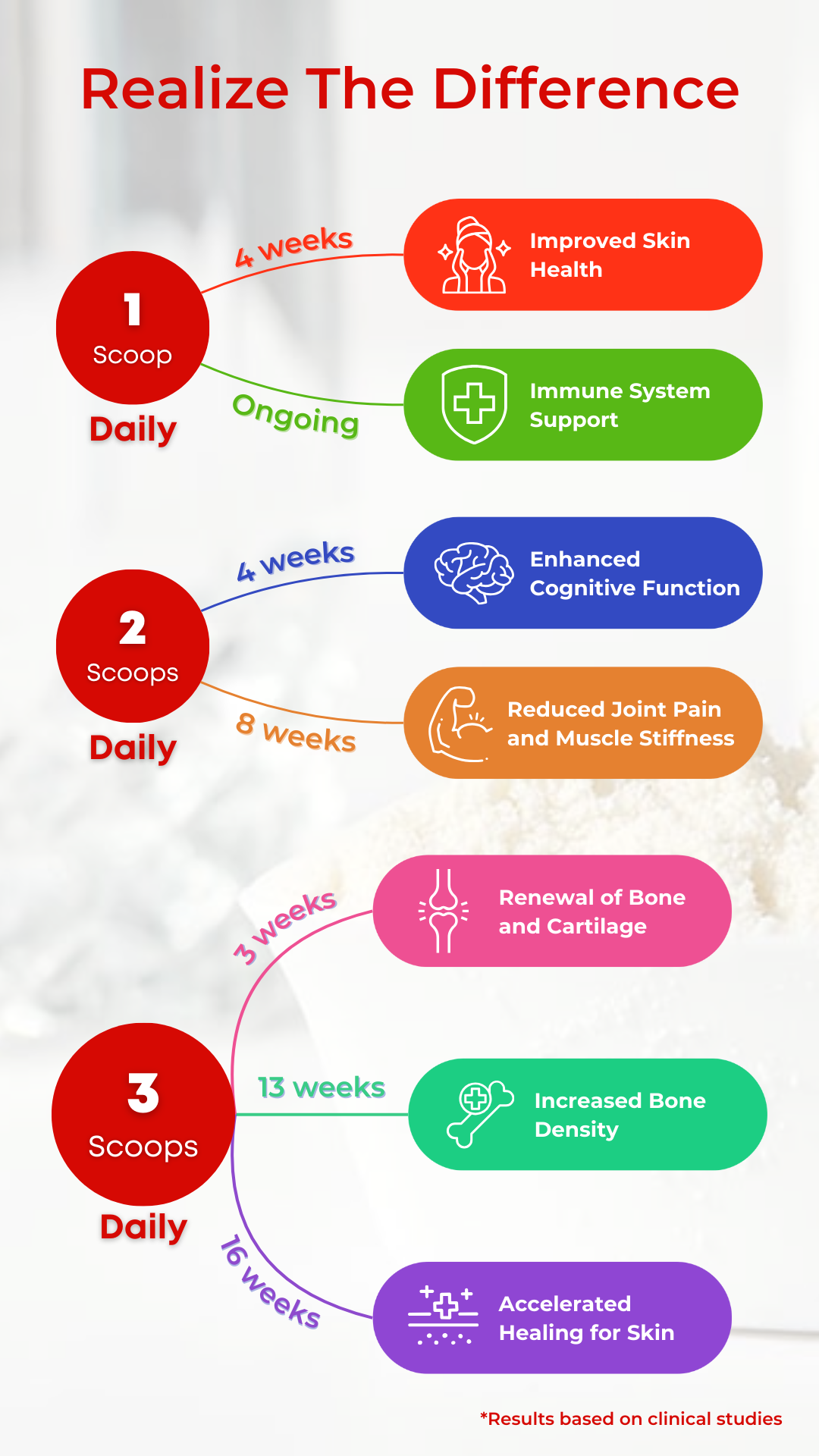 Discover the transformative power of Realize Collagen, the premium collagen peptide supplement designed to rejuvenate your skin, strengthen your joints, and enhance your overall health. Crafted with the highest quality ingredients, our hydrolyzed collagen is sourced from environmentally sustainable, grass-fed bovine, ensuring every scoop is pure, potent, and effective.
